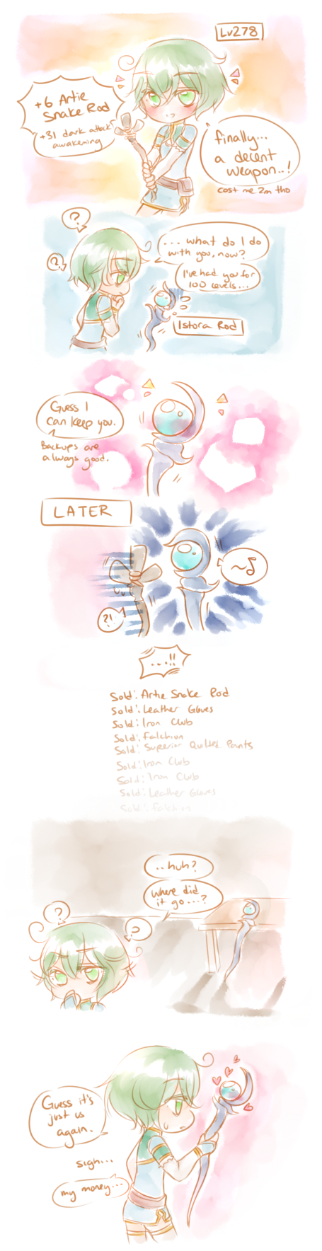 sidenote: im definitely aware of the buyback option, but i sold a ton of trash equips as well which kicked out the artie snake rod’s listing at npc shops – hence this part:
