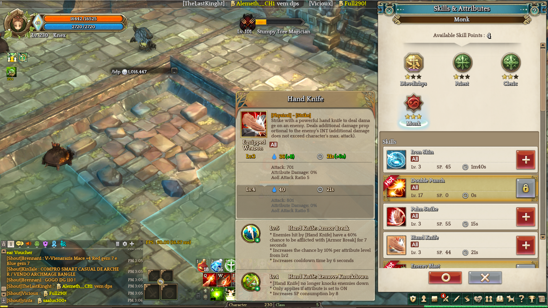 I think something got wrong on Hand Knife beacause since last update the skill should earn a new attack factor.