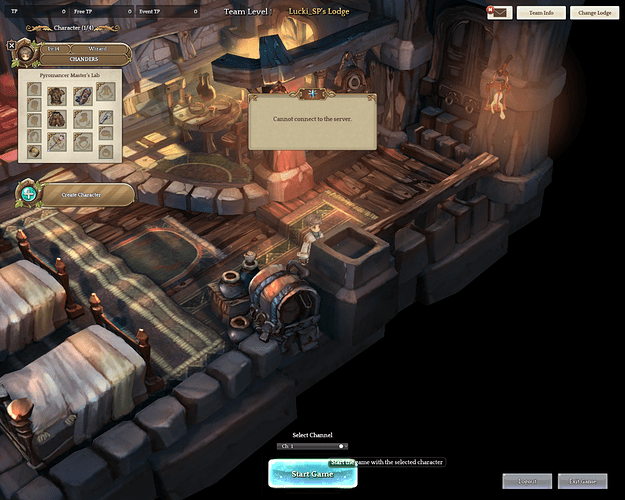 - I select the [SA]Valute , and i press start game with the Char , and the game freeze and go to the server list screen again