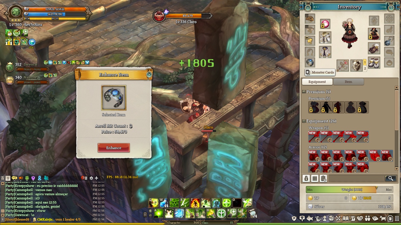 On 06/06/2018 at 14:01 (BRT) I had finished a Challenge Mode and went to refine my Solmiki Bracelet (Cloth) on Sausys 9, the channel was unstable and freezing the screen. I reached for the Bracelet on the +9 with 10/14 potential but when I went to refine again the channel froze and the bracelet disappeared from my account.