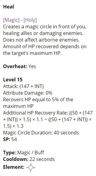 Mass Heal & Heal also scale with the person’s Max HP. However, both skills have a cooldown & in the case of Mass Heal people will run out of range ALL THE TIME.