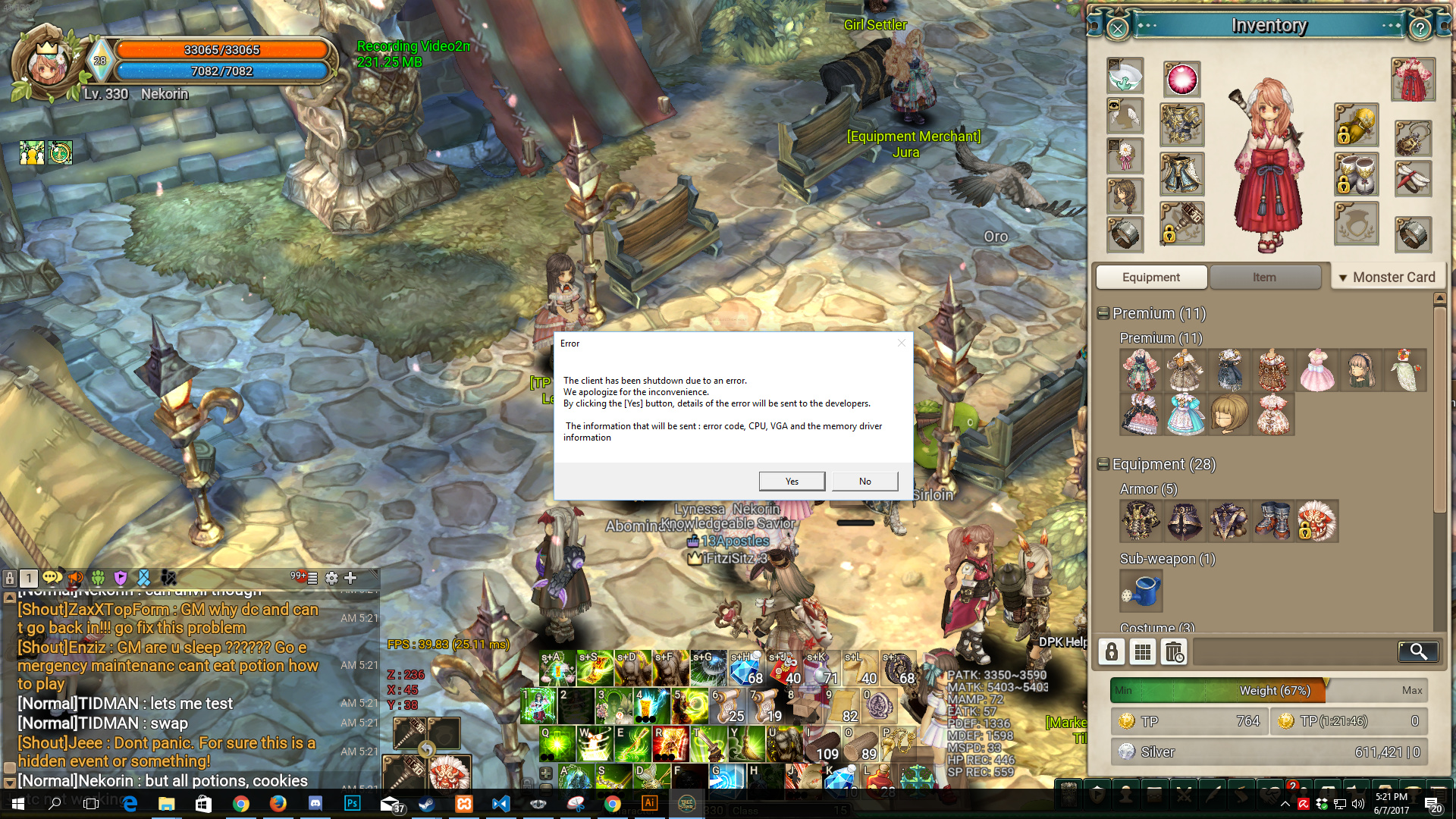 The game also get a VGA error/crash whenever a player equips the wedding costume and does an equipment swap.