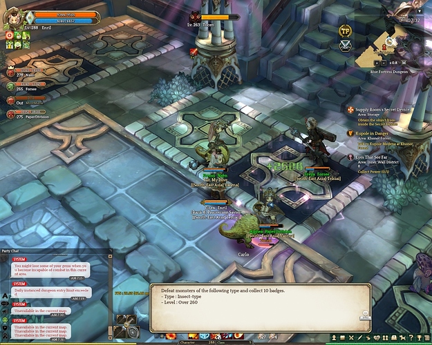 Tryng to do the event Donnes’ Wanted List with my fencer lvl 322, already did for 2 days receiving the quest for Devil type monster 302++, And for those 2 days i slay like 50 Green Charogs on Alambique cave and got the badges, today i receive the same quest, and kill more than 200 charogs and receive 0 badges, i try to kill other mobs, but same result. Event is not working today. Also i want to make my conplain about the price of reroll of the boxes, the price is absurd… Prizes are good, but the prices are way expensive.