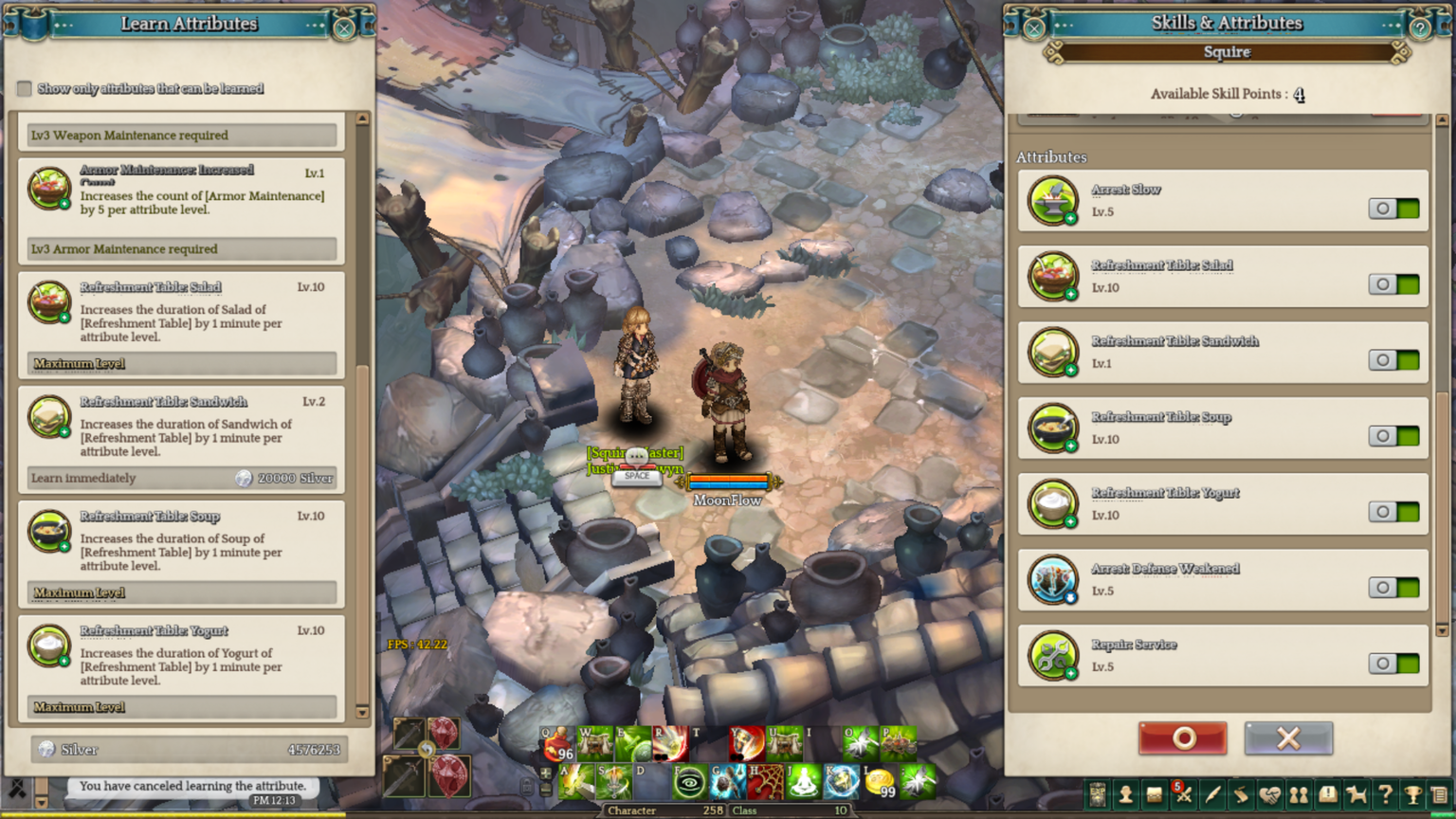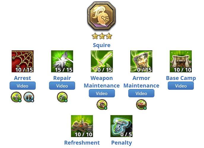 Really not a problem to spread your points around, but if your a squire and you don’t max refreshment table for the 32.5% better hp/sp food and the -10 tick rates, there was really no point getting those foods, it’d just be better to go to a superior squire whenever you need food for things like ET. Similarly you definitely want those extra 30 minutes, that’s 7+ more floors worth of food.