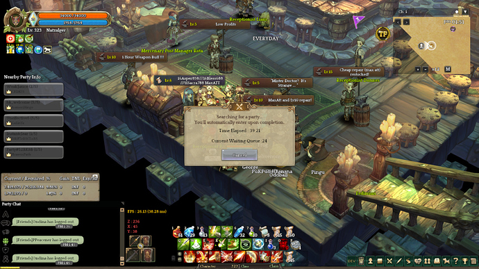 Hmmm…but in varena even peak hours 6pm to 10pm…no one queues that 290 dungeon…only rush…your lucky if you get 5 queues with a cleric on your party