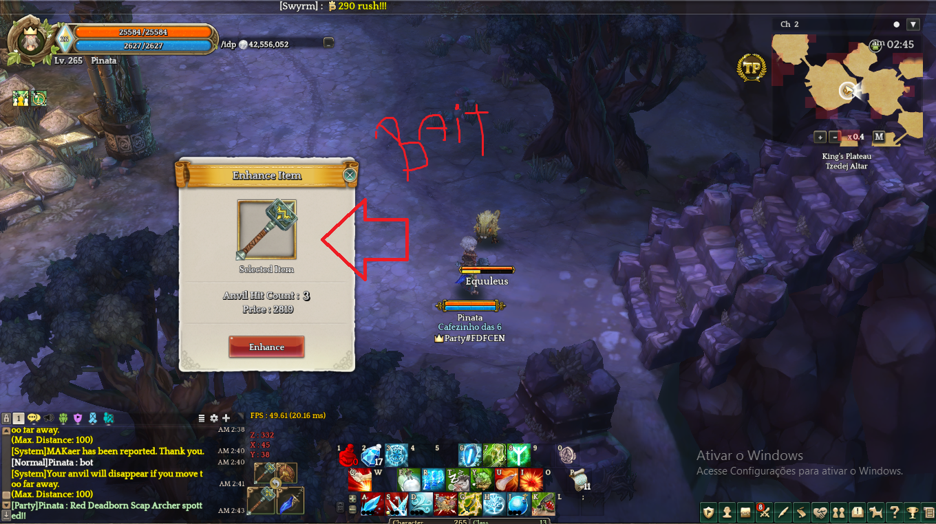 Bot farming RedDeadborn Scap Archer in King’s Plateau, CH2.
