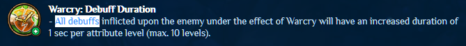 Btw, at patch notes the description is “All debuffs inflicted upon the enemy under the effect of Warcry will …”