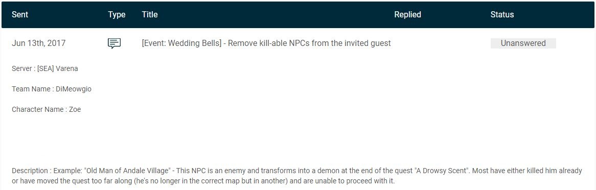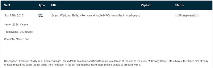 @STAFF_Yuri Please have the team remove “Old Man of Andale Village” (aka Andale Village Headman aka DEMONS IN DISGUISE) from the wedding invitation event.