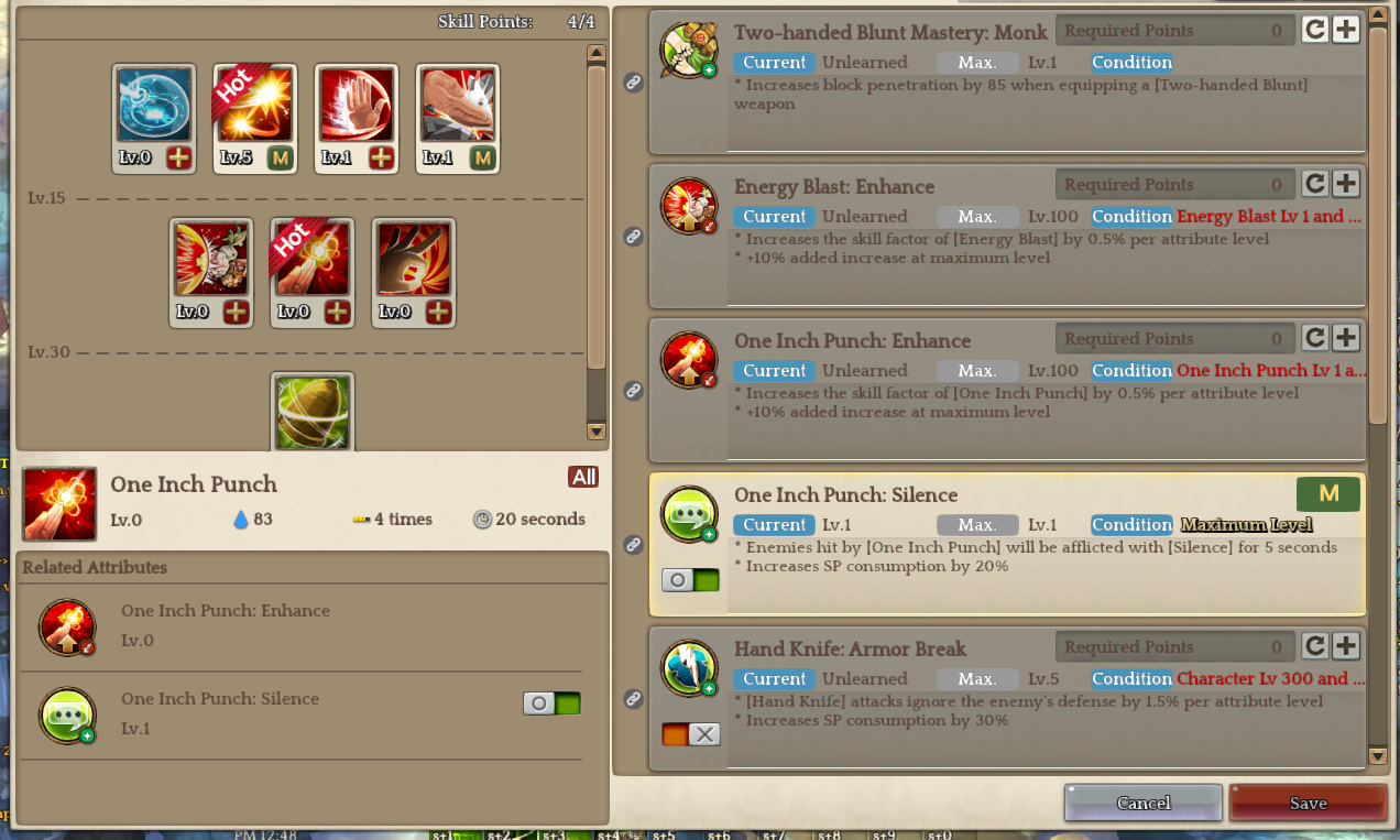 It is possible to learn “One Inch Punch: Silence” attribute without having or even being able to level up “One Inch Punch” skill.