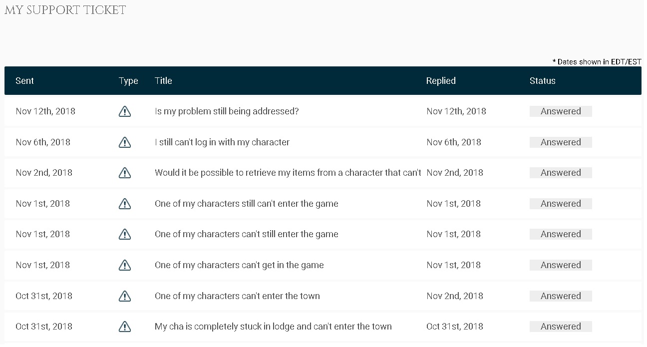 Bug Description : Hi there, the current problem I am facing is that I have been unable to log into and play one of my characters for over an entire week now.