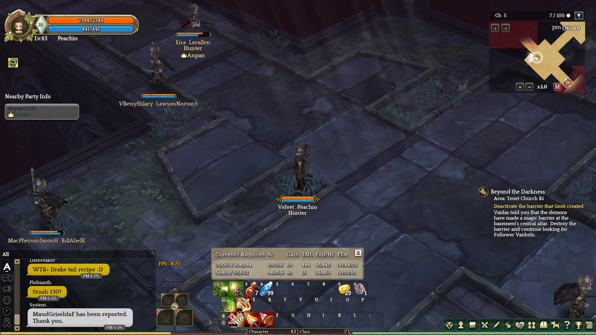 All level 50+ Barbarians with the same botting pattern/behavior, no reply to chat, continuous group KS.