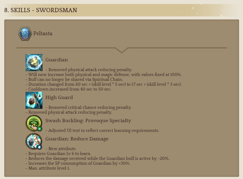 Does anyone know what are the changes for pelt? i.e guardian changes and stuff