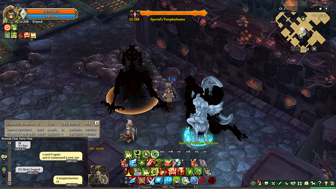 In this screenshot, you can see my persisting summon blocking the warp statue. You can also see my secondary summon that I have created when trying to cancel the initial summon.