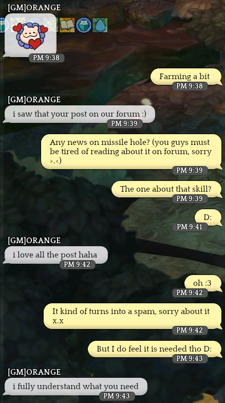 Today [GM]Orange warped to me in-game and said they saw my post on this forum. They said they fully understand what we need and that they are reading our posts here, that’s why he came to meet me.