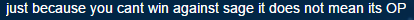 "I can beat sage but pls nerf MH because its taking me awhile to kill them thats OP! did I mention I can beat sage? oh and I am rank 2 in TBL my opinion is better than yours. "