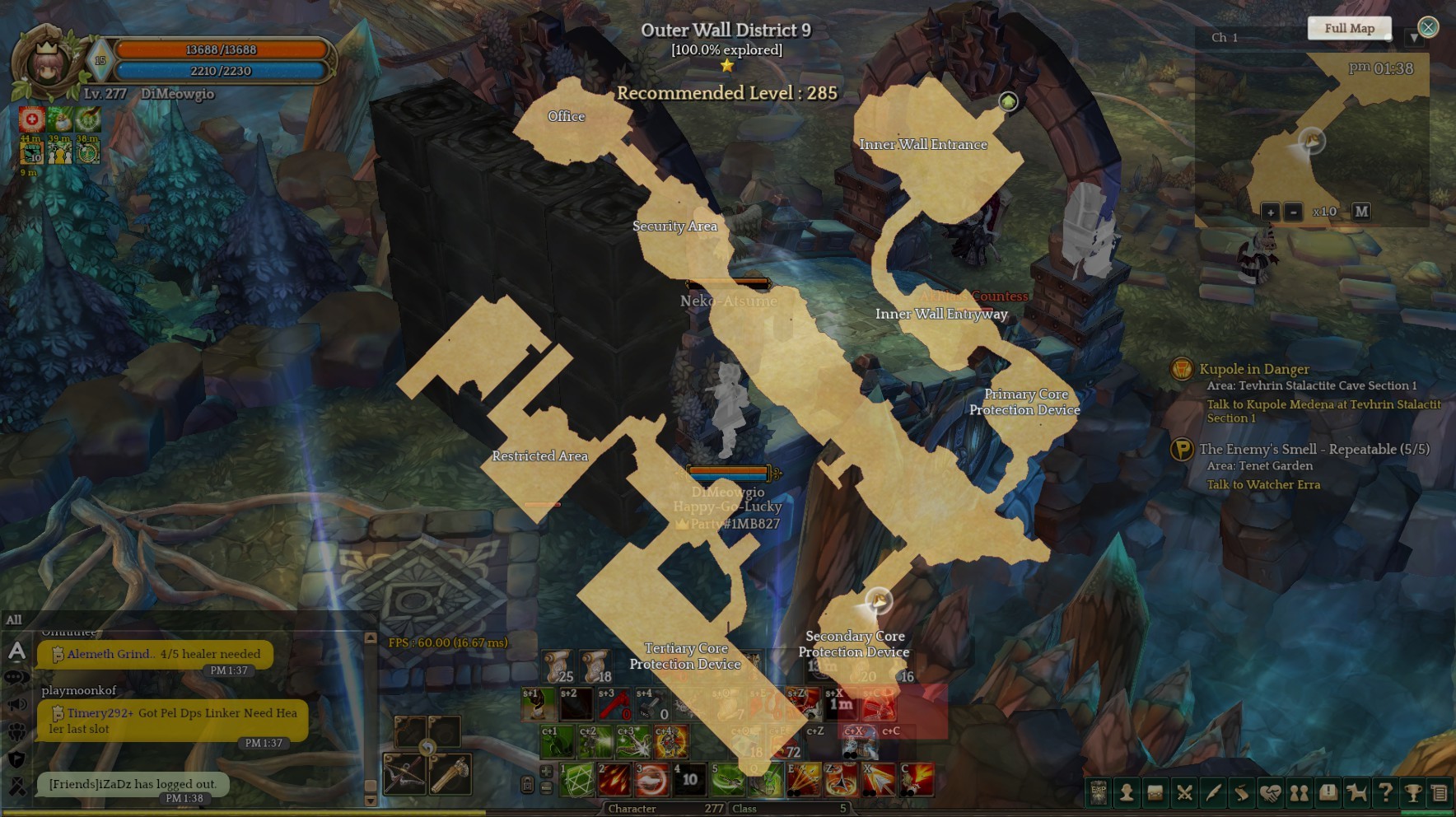 So far most of the maps can be explored with the exception of Outer Wall District 9 which has an area that is condoned off until a quest is taken up. Players will require the help of kinos to warp them into the area in order to get 100%.