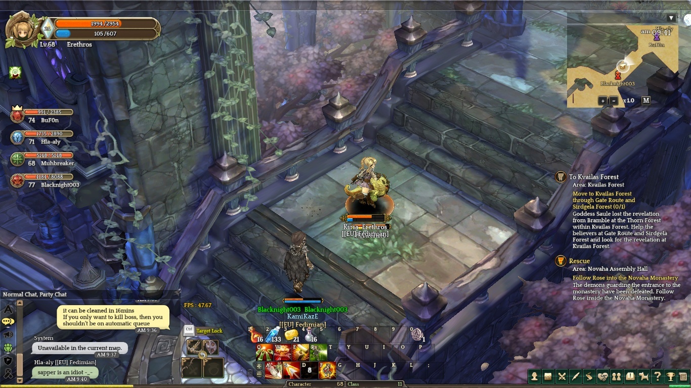 - Reason for report : Since we only can enter into a dungeon twice a day, I want to clean all the dungeon to get as exp as posible, and I supose people in autoqueue wants the same. When I went into the dungeon after been waiting for a long time, this players decided to go only for the boss, they 4 were on a party, and used the autoqueue only to dont’t let me get the experience that I was waiting for 24h.