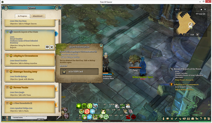 Ican’t send quest and can’t abbadon the quest is at Grand Corridor after I finished a boss that have many sword on his back a guest beg me to talk witha priest but I can’t see them at grand gorridor then I go to sanctury but that NPC won’t talk with me for now what can I do. IMC pls help me XD