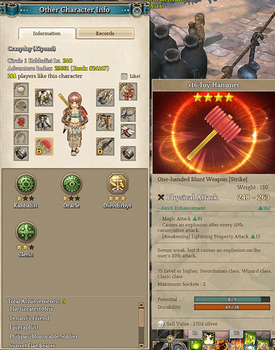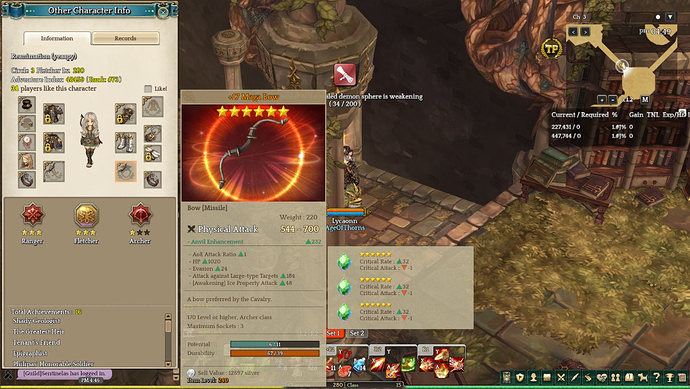 That maga bow… losing only 2 potential to get to +17. Either that is the luckiest mofo in world or something needs to be looked into further considering upgrade exploits have been known to exist (it’s easy to fake a potential loss).