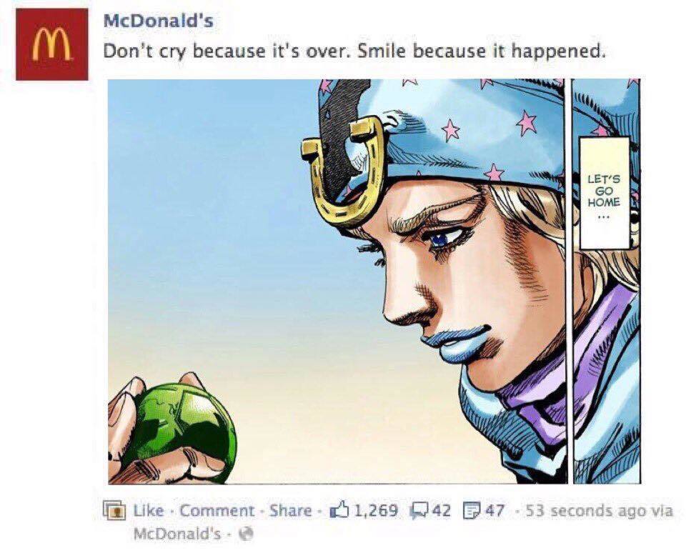 Sorry that went over my head. If it’s a jojo reference I haven’t gotten to watch it yet.
