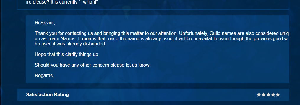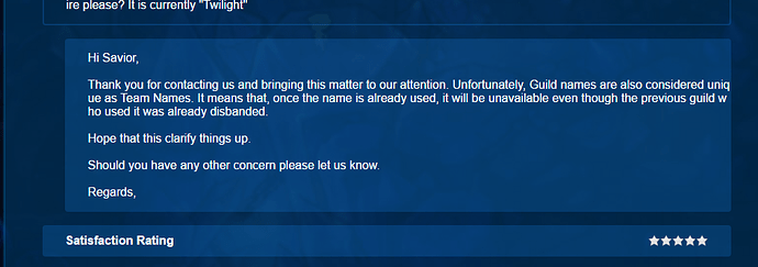 Oh, I don’t expect the current staff here to fix it just wondering if this works exactly as the original post says. Where if you disband a guild a or delete the Templar character it ties up the name forever. Given the nature of this it’s not exactly game impeding like a lot of other things so it would fall under low priority but yet another small thing to list.