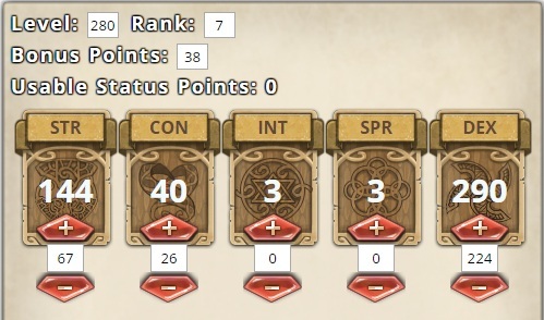 EDIT: Looking at a bit of info about Fencer c3, might be better you pick 1:1 or 2:1 DEX / STR