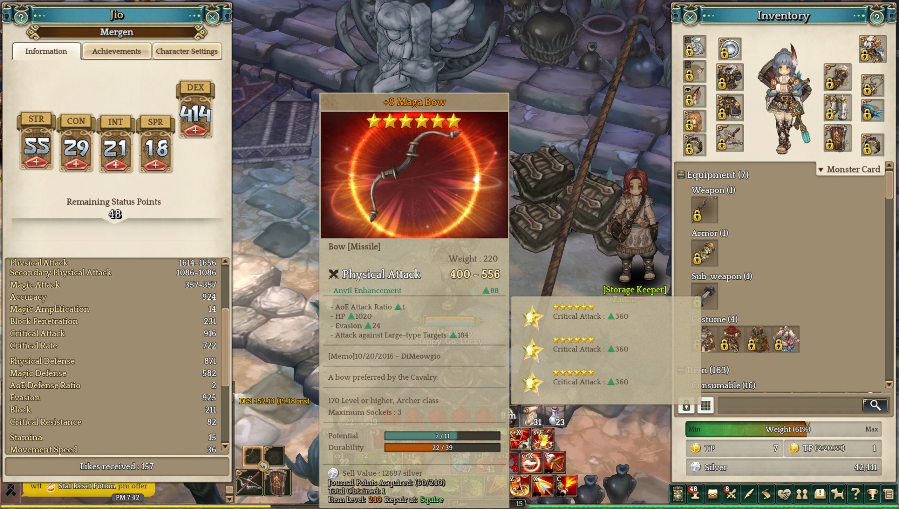 you can charge while moving?? i never tried that. i usually use cloaking before homing arrow so that no one notice me. my homing arrow is still at lv 1 and hit around 40k per enemies. off topic, can i just eat exp card, reach lv 317 and go to mishekan forest’s practonium quest? or is there any prequisite quest beforw unlocking mishekan?
