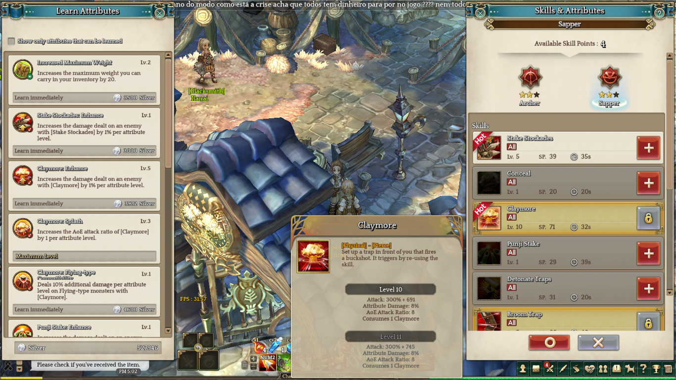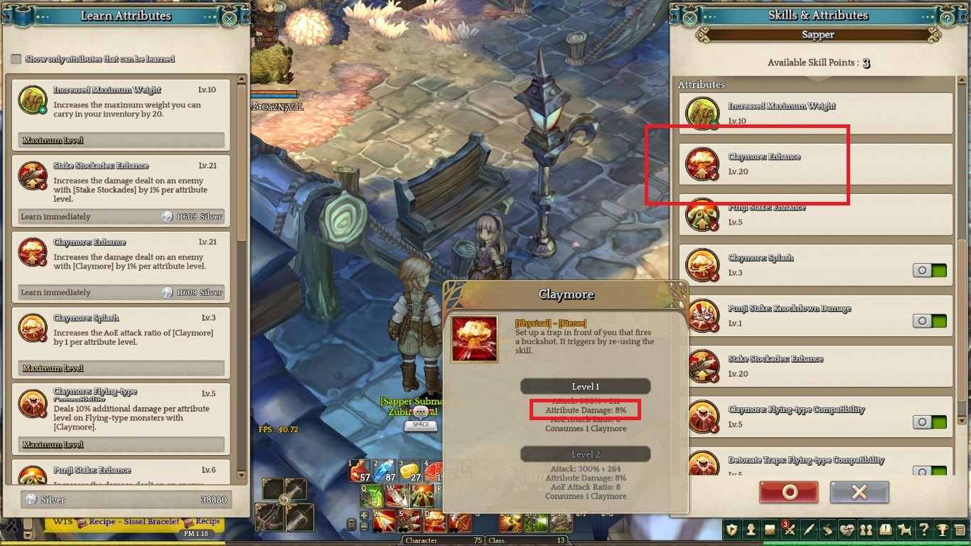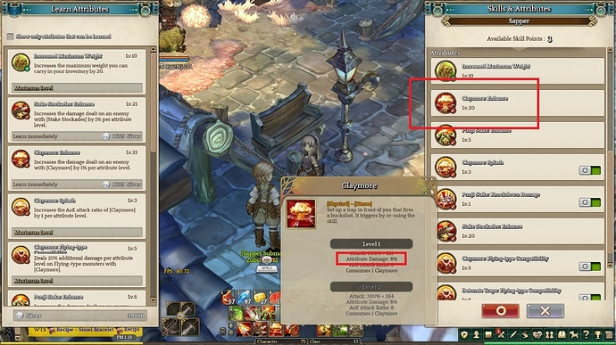 Simply learning enhancement attribute of Sapper’s Claymore from Sapper Submaster in Orsha can’t make it pass attribute Lv8 in tooltip box despite the skill window (F3) show the correct level of attribute.
