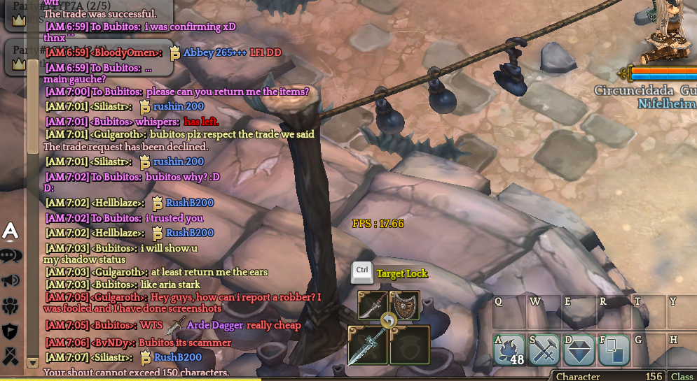Well… OP wanted to be smartass and buy really cheap Arde Dagger (300k for Arde which is going on market for about 600k… yeah). So he wanted to be clever and ended up being scammed. Probably OP thou ‘‘wow thats some noob there, i’ll buy it for 14 talts now, im so clever, yeah’’.