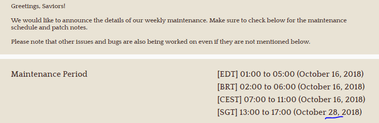 I don’t want to be that guy but I’ll be really upset if the Staff don’t update the game until Oct 30th. Considering the amount of sh1tstorm happened in the last weeks, the game need a real big patch.
