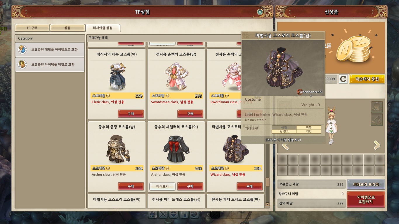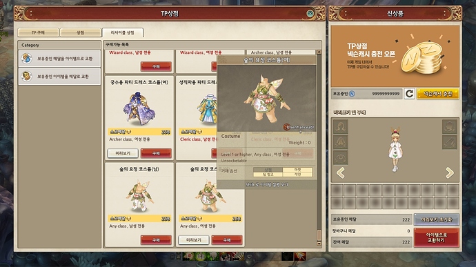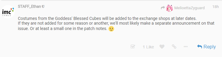 Feel like these costumes (including spirit costumes) will be in gacha. Normally in iTOS, costumes in exchange shop are from gacha. Costumes can be bought at 129TP like Xmas costume will not be in this exchange shop. However I still hope that they will just sell it at 129TP like ktest.