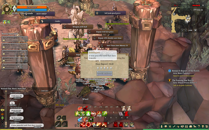1 HRS. for waiting to enter dungeon and get spamming enter.