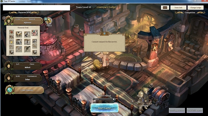 Tried logging in my character in all 5 channels, and it cant still get in. Error says “Cannot connect to server”.