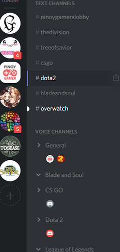 Yung isang server na cnalihan ko po may text at voice channels pra po sa ibang mmos.