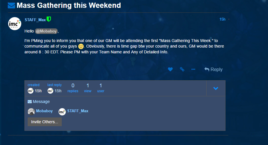 Reviving this thread. I can try to message STAFF about a GM showing up this time. I’d like to see the health of Klaipeda revived.