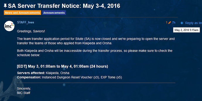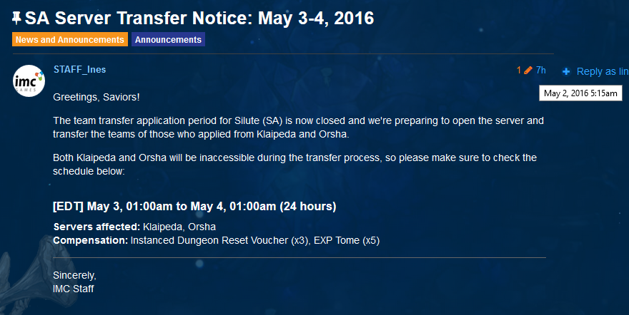 You warned the server transfer data much above, it should have been done in advance, so players had enough time to prepare for the transfer. 7 hours ago you warn that will transfer players, I could not guess, and not remembered the 48 hours to receive the silver in the Market. I ask understanding in solving the problem. I do not care for silver, just want to transfer my team.