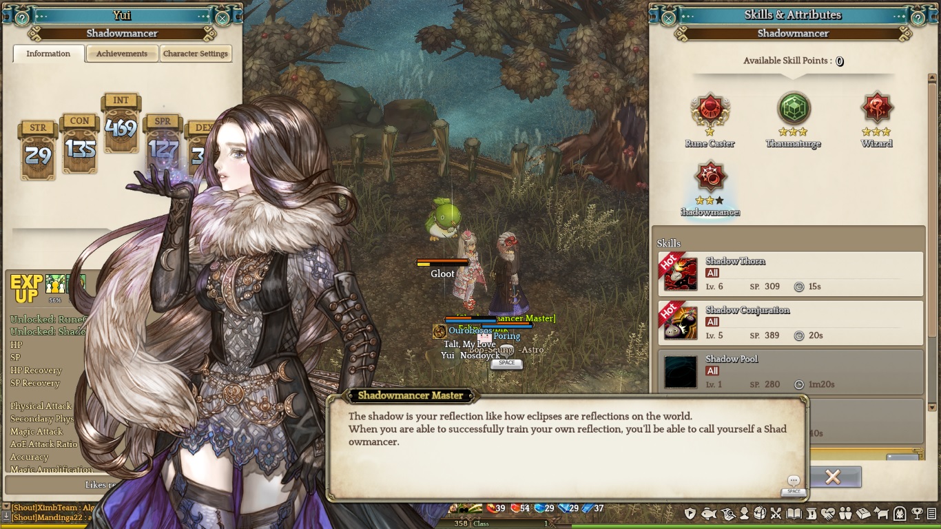 Bug Description : My character wasn’t a shadowmancer before the last update (February 19-20), but I finished the quest days ago and today I used the Rank Reset and got the Shadowmancer class. However, I can’t buy attributes with the shadowmancer master. The game acts like there is not even an option for it and immediatly gives me the costume upgrade quest. I’ve met people having the same problem.