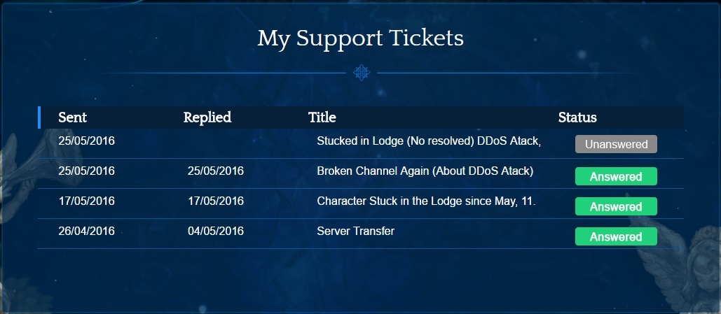 Hi IMC, many players of [SA] Silute Server have a problem with characters stuck in lodge (many topics on forum about that). I’m stuck with my 2 characters, necromancer in Dinna Bee Farm and priest in Mage Tower 3F, I followed the steps that are in the post that made explaining about the DDoS attack and I sent a ticket with all necessary information, but did not solve my problem and many other players so far.