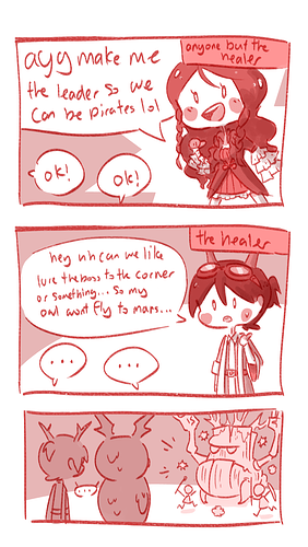 so far I’ve only met one guy who swore at me like the comic above lol but a lot of people ignore me when i ask them to lure to corner wehhhhh