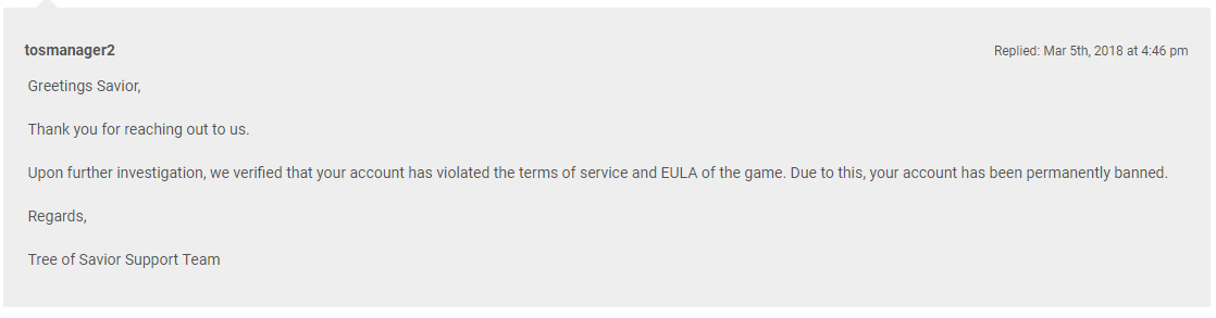 Anyways my feedback is have better support response tell people more information then vague stuff and maybe E-mail someone when you ban them so they don’t go asking around as a new player looking like a fool and then having me feel stupid cause I thought I was just having a error but in reality I was banned for a reason not known to me.