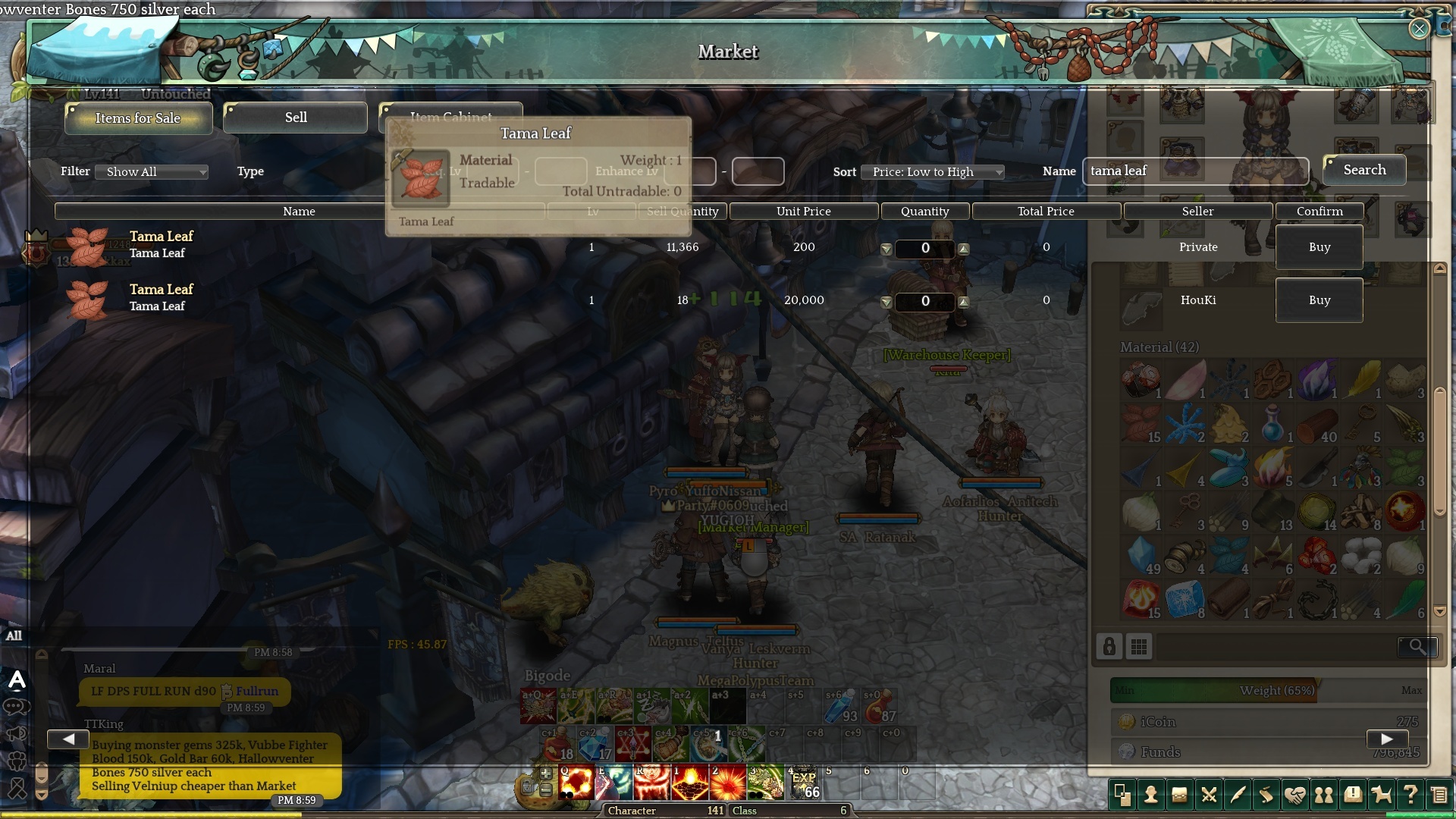 Server Laima, i was going to sell my materials then i found this private seller with 11,366 tama leafs. I wonder how much time he spent getting all of those, or is it a bug in the market?