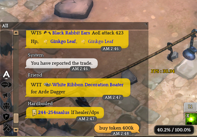 May be when someone /w him. He will prefer to trade with 10 arde.
