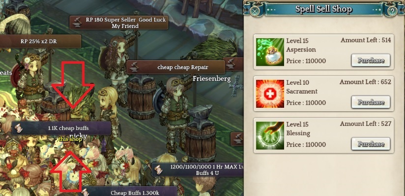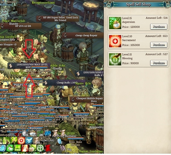 I think Spell Shop titles should by default have the prices in them, so “(120000/105000/90000)” would automatically get tacked on to the end of the shop name when it is created. The same would apply for Squire shops. It would prevent false advertising, and make it easier to find the cheapest shop without having to open each and every one.