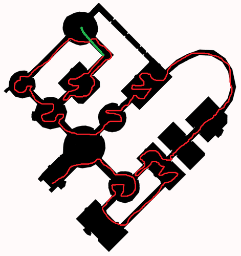 My route is almost the same than the one from the post before mine, but in the ghosts and dragons part I take the right side, the one with the large room, kill the boss, take the long corridor and finish the last circular room.