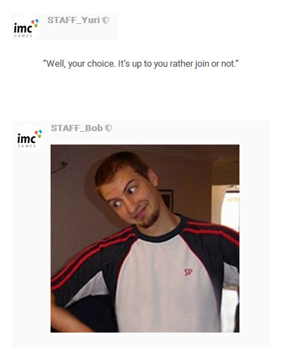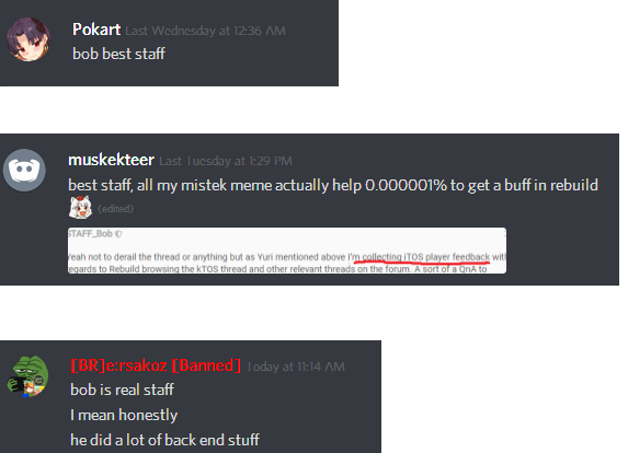 Get an in-game screenshot of yourself with 3 different players saying “Staff Bob is better than Staff Yuri” and post the photo as a reply in the thread! I’m not forcing anyone to lie, so it shouldn’t be that hard