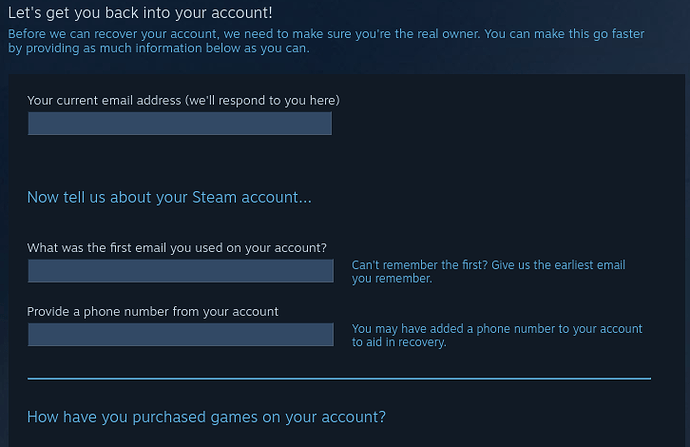 The previous e-mail was clearly hacked, so I disabled it completely and recreated a new email address with a new password. In a rush, I pressed “disable account” on Steam and got some instructions to check for viruses or malwares and secure my email again, which I did, and got a key to unlock the account afterwards. I tried to click on the link to re-enable the account, but instead of asking for that unlock key, Steam asks for the old account password, which has been hacked and have no idea what it is. So yes, I pressed “Find account”, then “I cannot access that email” since I disabled it and got the form you mention as 5. I filled the form with the current and the old email and got a response that my help request will be processed as soon as possible… which I suppose won’t be until Monday.