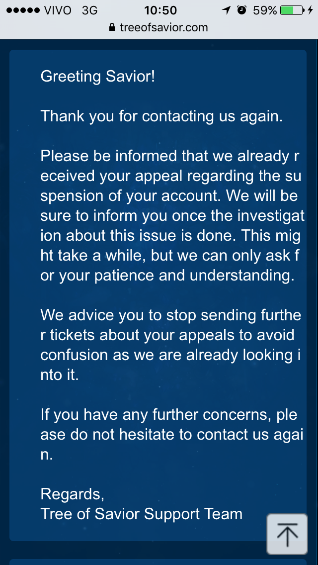I have this problem for the past 2 weeks now. I have openned 6 tickets. First, i got a replied to try a few steps and it didnt work. I openned a second ticket and guess what? Same reply to try the steps. I then openned a third ticket and a fourth and a fifth and a sixth and guess what? No concrete answer, nothing to solve my problem. Again: its been 2 weeks now. No, I am no BOT/Gold Seller, I dont even have my teamname wrongly in the BOT/GOLDSELLER list like happened with a few ppl from other servers. Seriously?!! Will I have to open thousands of posts/tickets to get someone into it? I havent open another one till now, beeing patient enough already!!