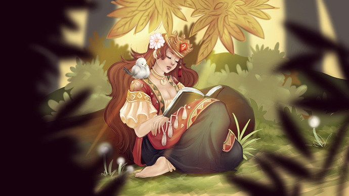 My druid in her fedimian costume and baby crow tit Fell asleep reading the book of revelation