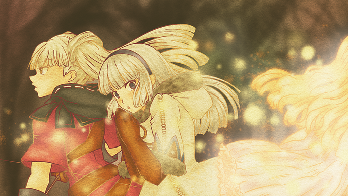 This is my submission for the First Fan Art Fest! First of all, I wanted to portray my friend maze’s Ranger and my Cryomancer in some way. I wanted try showing the spirit of Tree of Savior as well: especially the classic storyline and the storybook art style that are so characteristic of it. That is why I decided to draw inspiration from the story quests in the game which include the mysterious Girl–the times when you have to find her, chase her, and protect her are some of my favorite quests in the game. My friend and I were really excited when we found her the first time.