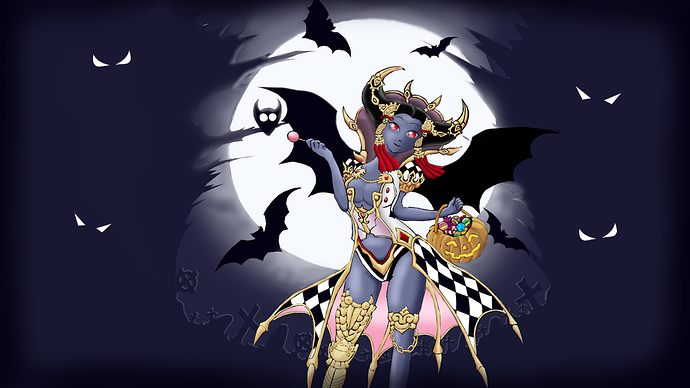 Demon queen Gesti loves halloween. In this night a horde of bats are bringing her sweets that they stole from careless children.